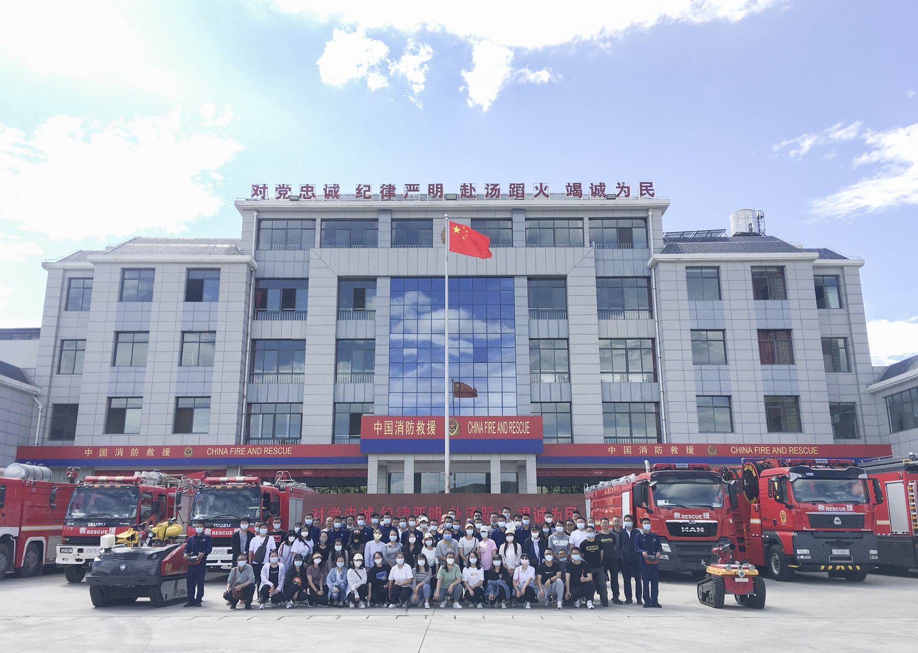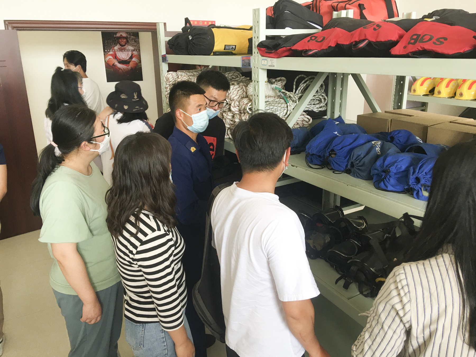 此次活动中,第一环节,由石江中队消防队员带领培训队伍参观石江中队的生活设施、消防器材、消防设施、消防队环境等。与消防队员面对面交流,深入了解消防队的工作情况。