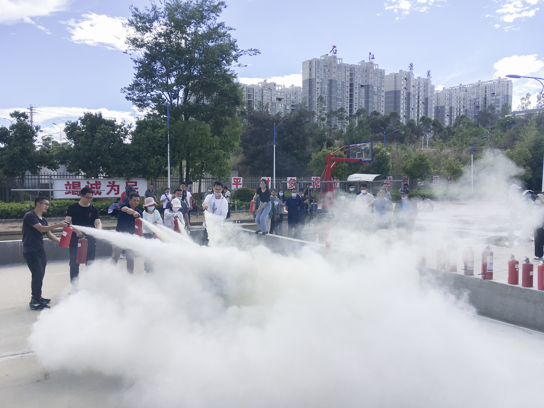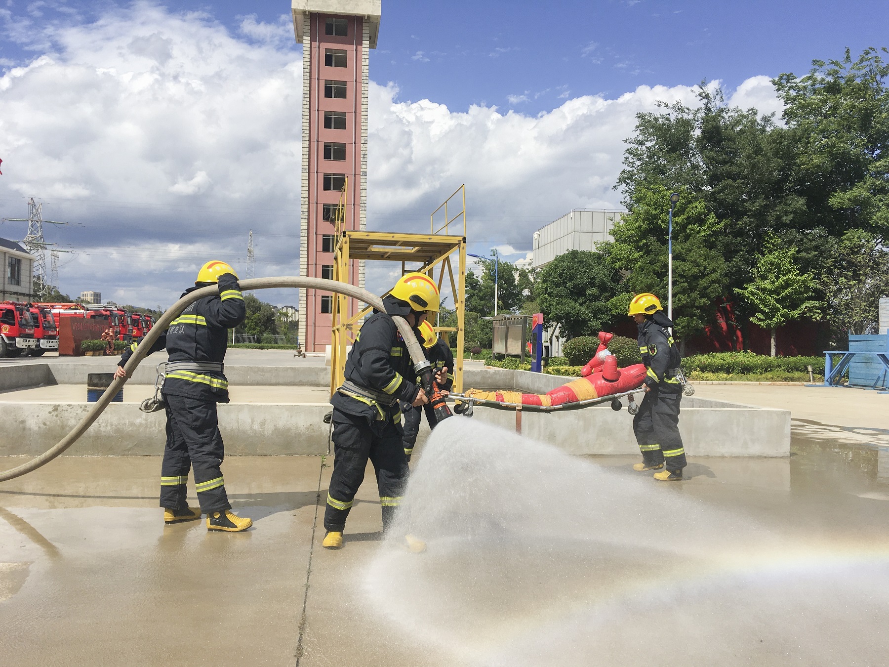 现场学习氛围浓厚,各学院辅导员通过不断操练,逐渐掌握了消防动作要领,寓教于乐的教学方式让参训的辅导员真正能提升消防意识,掌握消防技能。同时微型消防站的队员们也一次次地进行灭火救人操的练习,为下一步参加安宁市重点单位消防比武做准备。