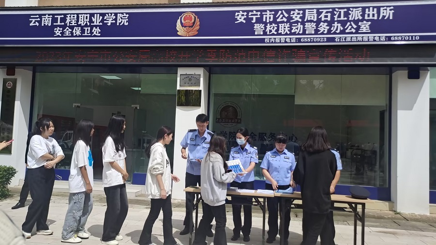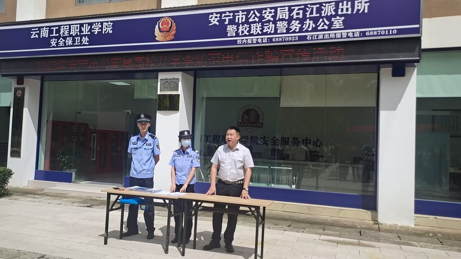 为切实做好学校师生安全防范教育,预防和减少电信诈骗案件的发生,8月25日11:00,安宁公安局石江派出所在云南工程职业学院组织开展2023年秋季学期开学季暨秋风行动防电诈宣传工作。