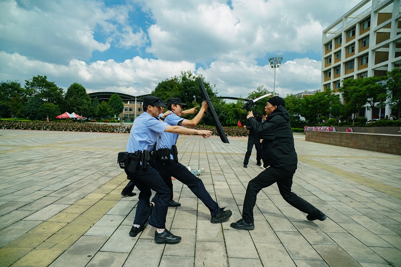 为切实提升学校师生应对暴恐事件的危机意识和处置能力,9月20日云南工程职业学院邀请安宁市公安局特警大队和石江派出所到校开展反恐防暴演练,2700余名师生共同参与,学校党委书记木红春、党委副书记张耀、分管安全副校长占龙祥出席。